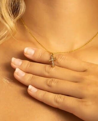 18K Gold Cross Necklace – with Sparkling Stones – Waterproof Jewelry