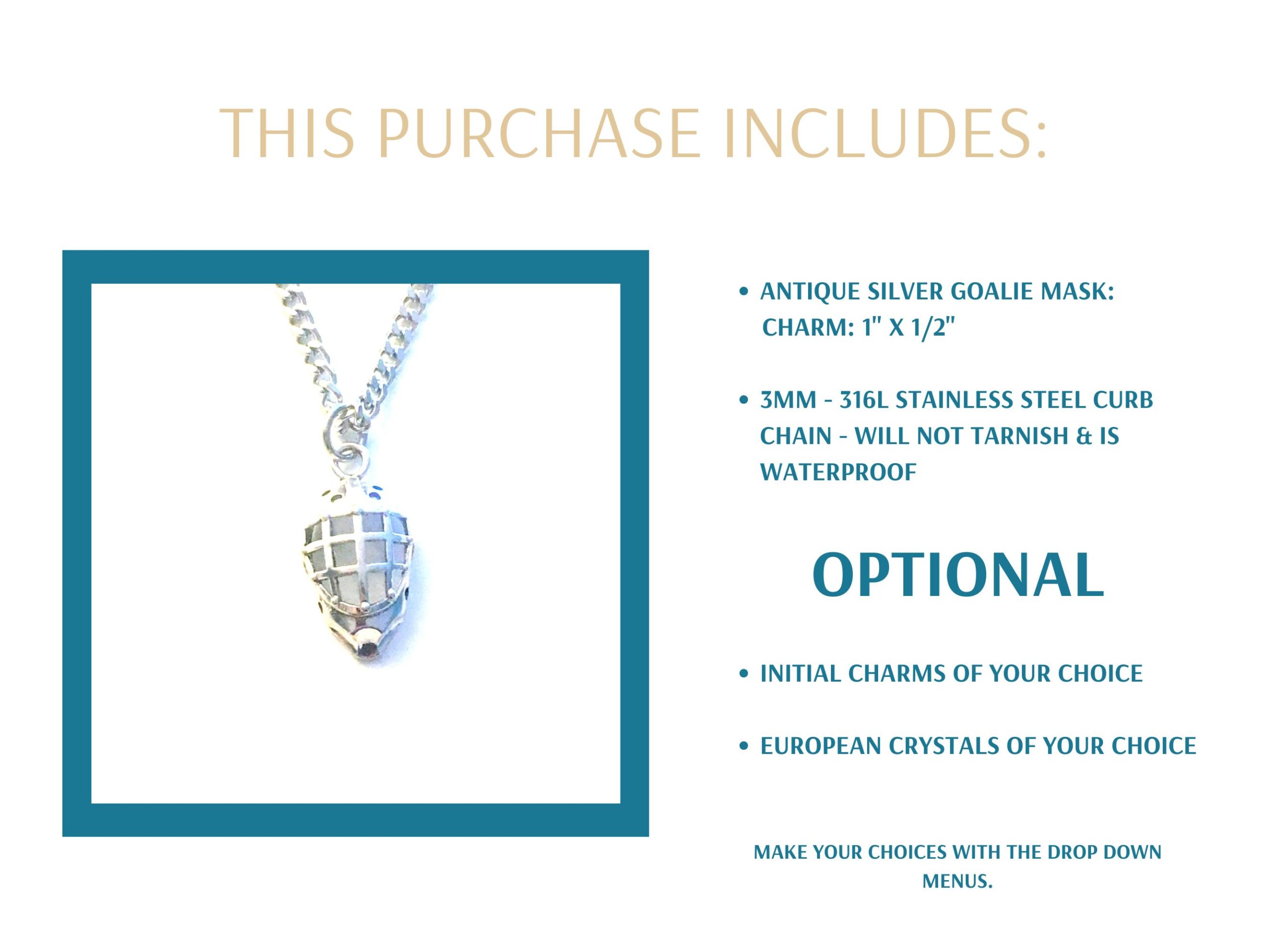 Are you looking for a simple but meaningful gift for the goalie in your life? This is an excellent choice for a boyfriend, husband, son, dad or best friend. This goalie mask necklace is a very popular gift for Father's Day, Valentine's Day, Baptism, Confirmation, Birthday, or Christmas. The chain is made from stainless steel so it won't tarnish or wear over time. It's even gaining popularity with women.